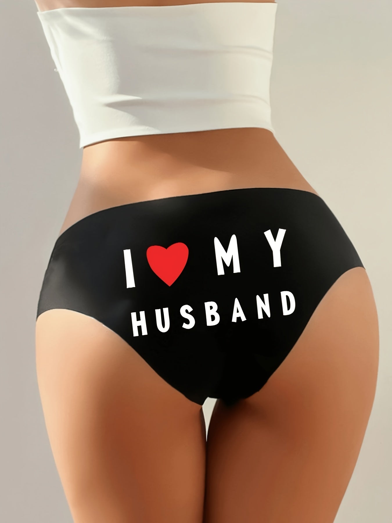 1pc Women's Low-Rise Seamless Briefs with Adhesive, Full-Coverage Breathable Stretchy Soft Comfortable Panties with "I Love My Husband" Romantic Heart Pattern in English