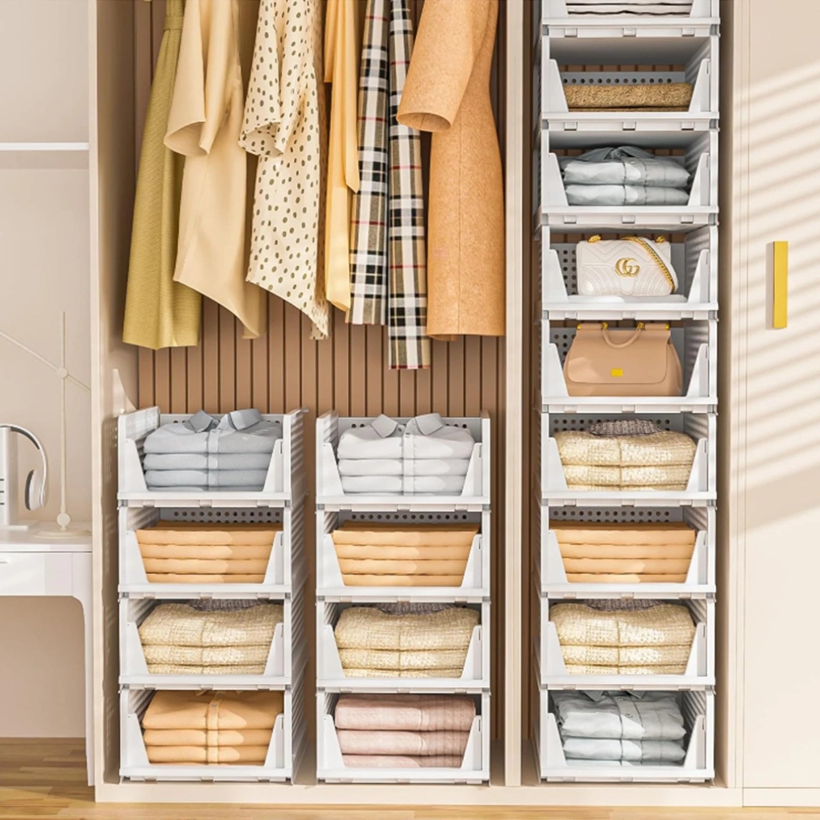 - Space-Saving Stackable Design: Available in 2-piece or 4-piece sets to maximize vertical cabinet and wardrobe space