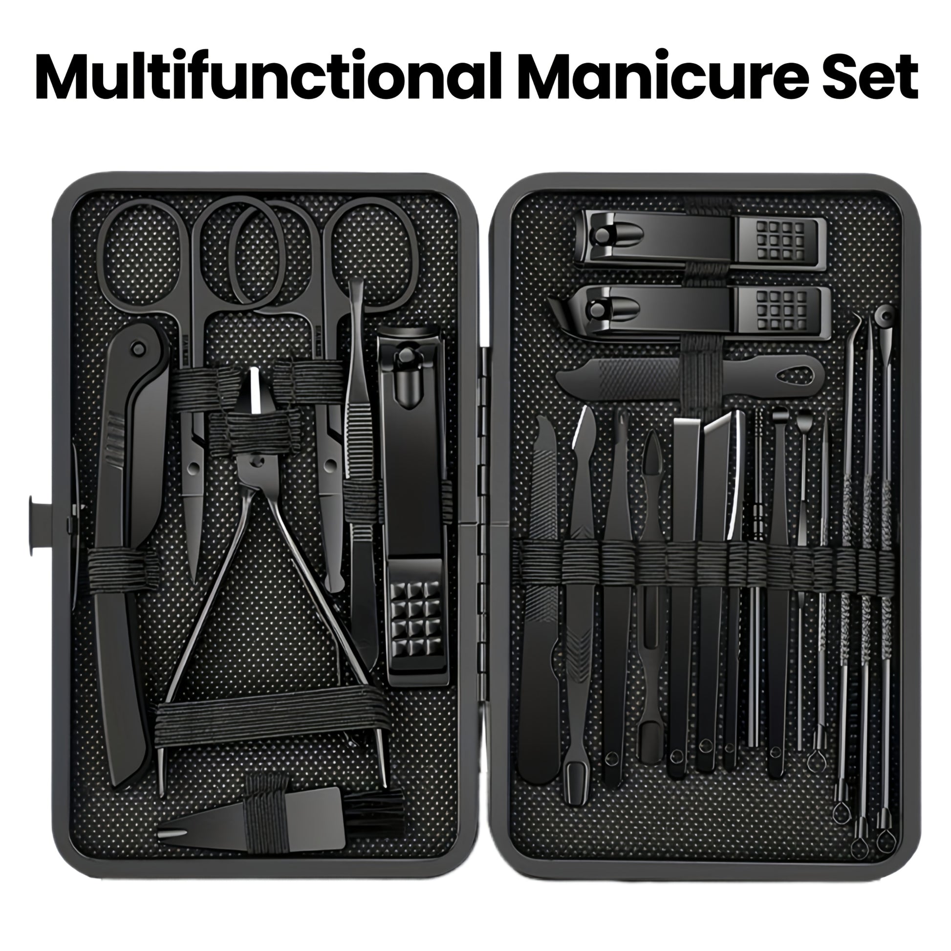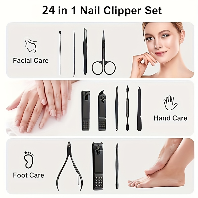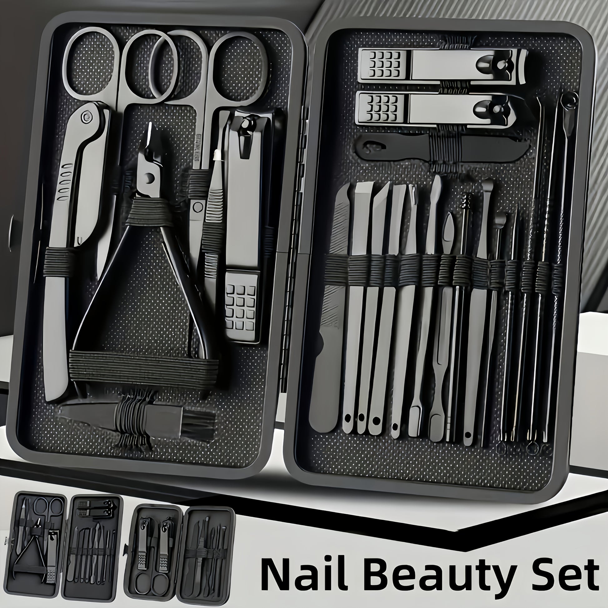8/15/24 classic black series nail care sets, travel manicure pedicure sets, including nail clippers, cuticle trimmers, tweezers-sharp blades, precise trimming, and essential beauty tools for finger and toenail care-family hyd