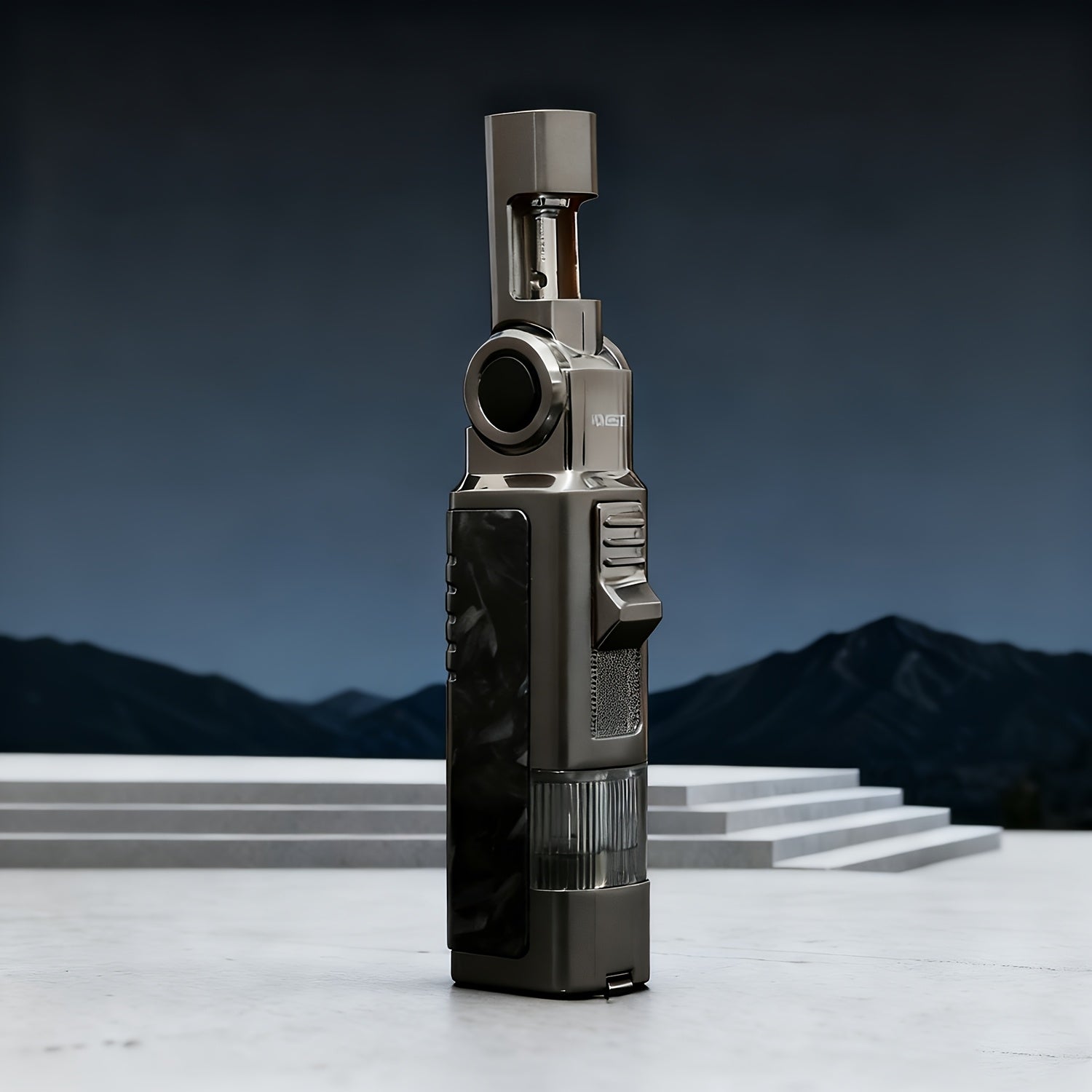A Versatile Metal Torch Lighter That Features a Punch, a Foldable And Rotatable Design, And a Polished Marble Pattern. It Is Windproof, Adjustable, And Refillable with Butane, Without Battery