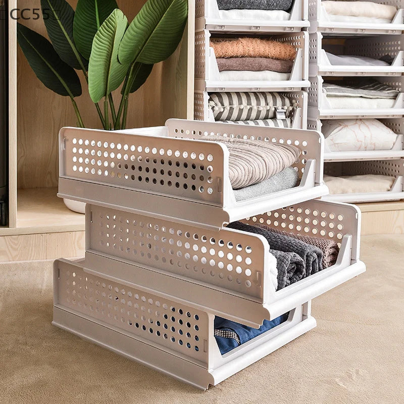 Foldable Clothes Storage Drawer, High-Capacity Stackable Plastic Storage Box for Home Organization