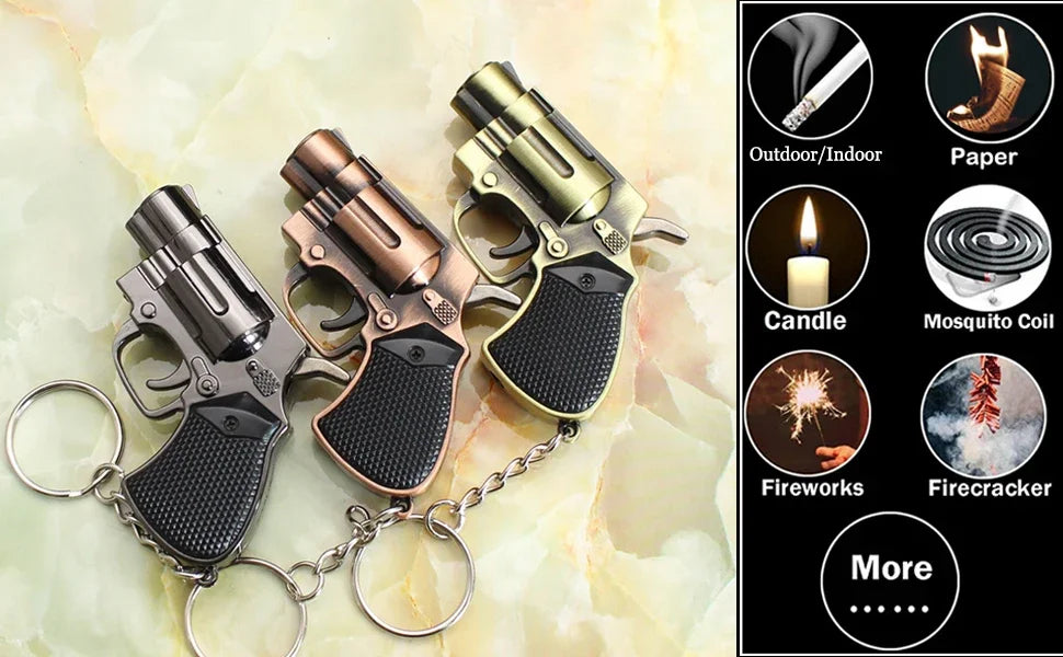 Cool Gun Shape Jet Flame Torch Lighter Adjustable Flame Windproof Refillable Butane for Cigar Gifts Outdoor (Without Butane Gas)