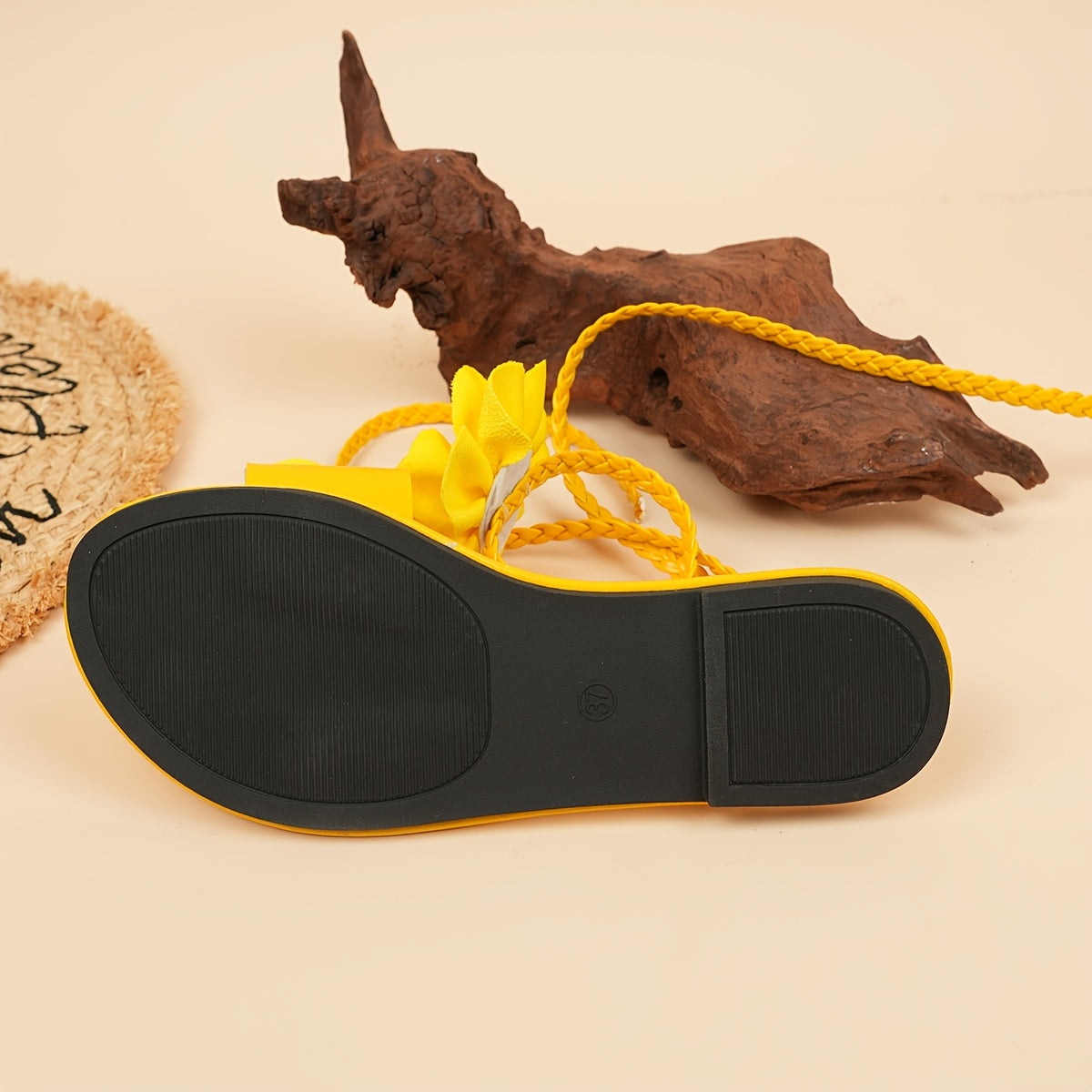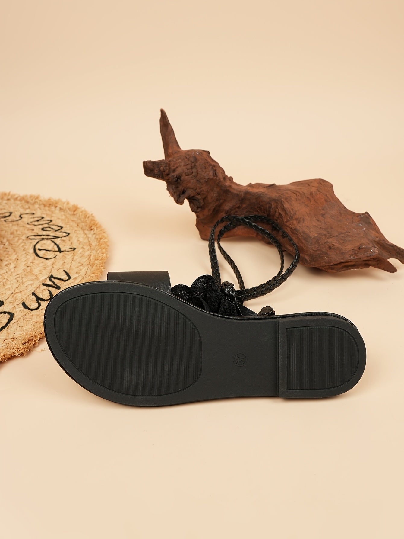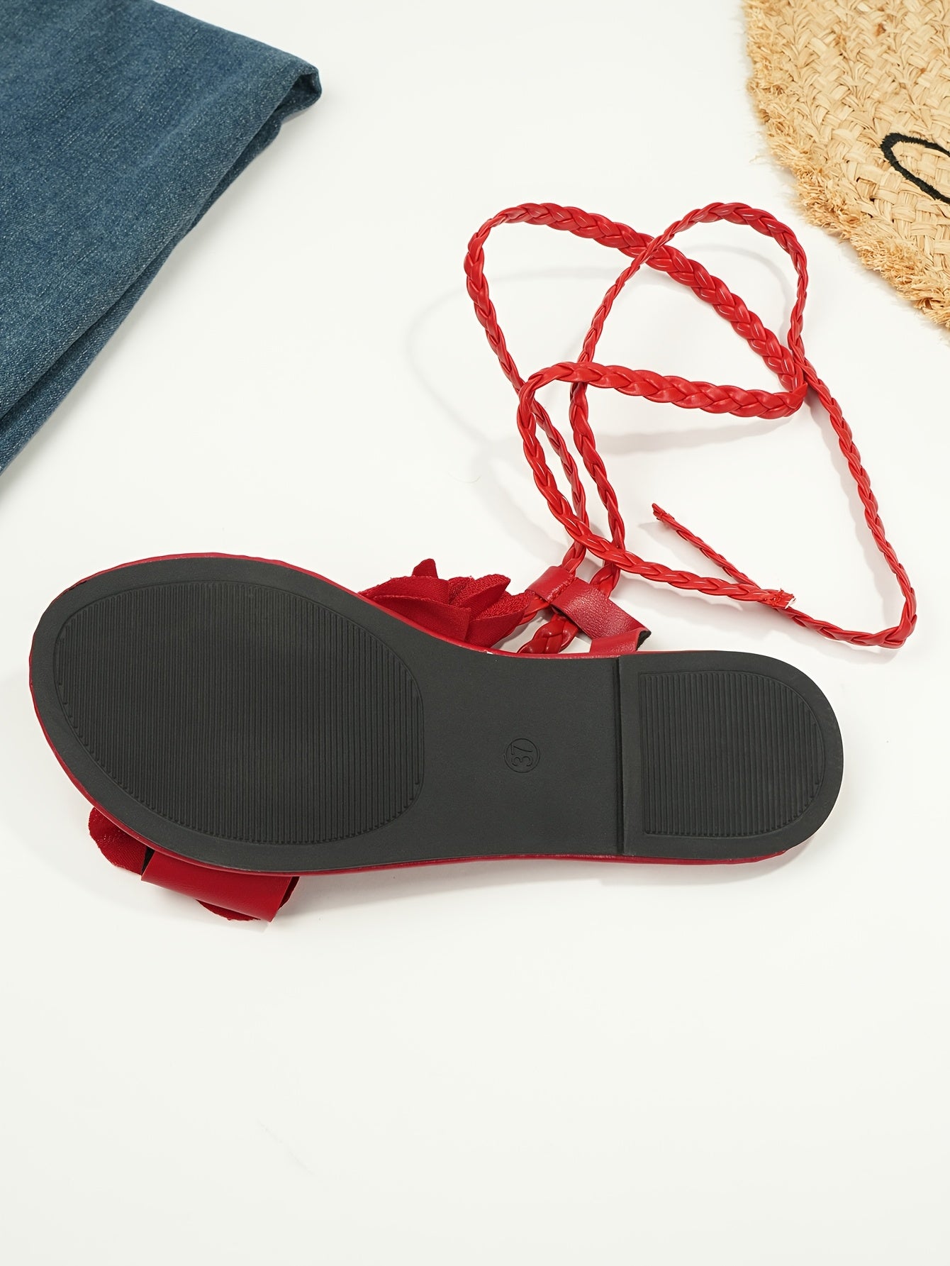 Fashion 3D Floral Woven Lace-up Women'S Sandals | Summer Roman Style, Strappy Back, Open Toe, Synthetic, Low Heel, All-season
