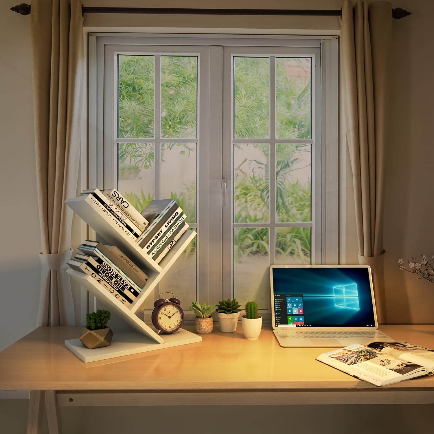 Home Storage Wooden Bookshelf Tree-Shaped Creative Display Rack