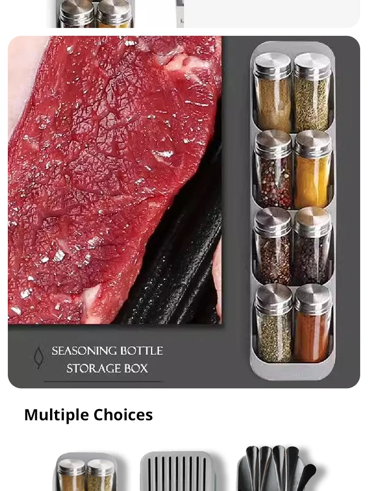 - Multi-Functional Kitchen Organizer: Designed to store knives, forks, spoons, tableware, and spice bottles in one convenient tray
