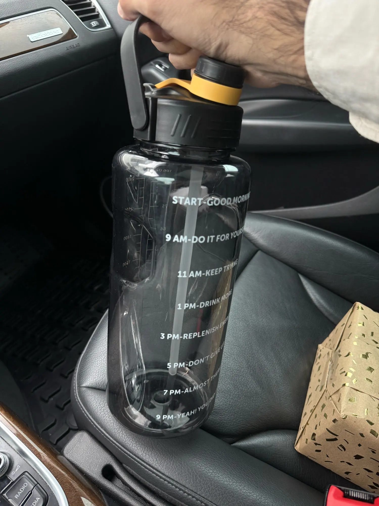 - Built-in time marker helps track water intake throughout the day