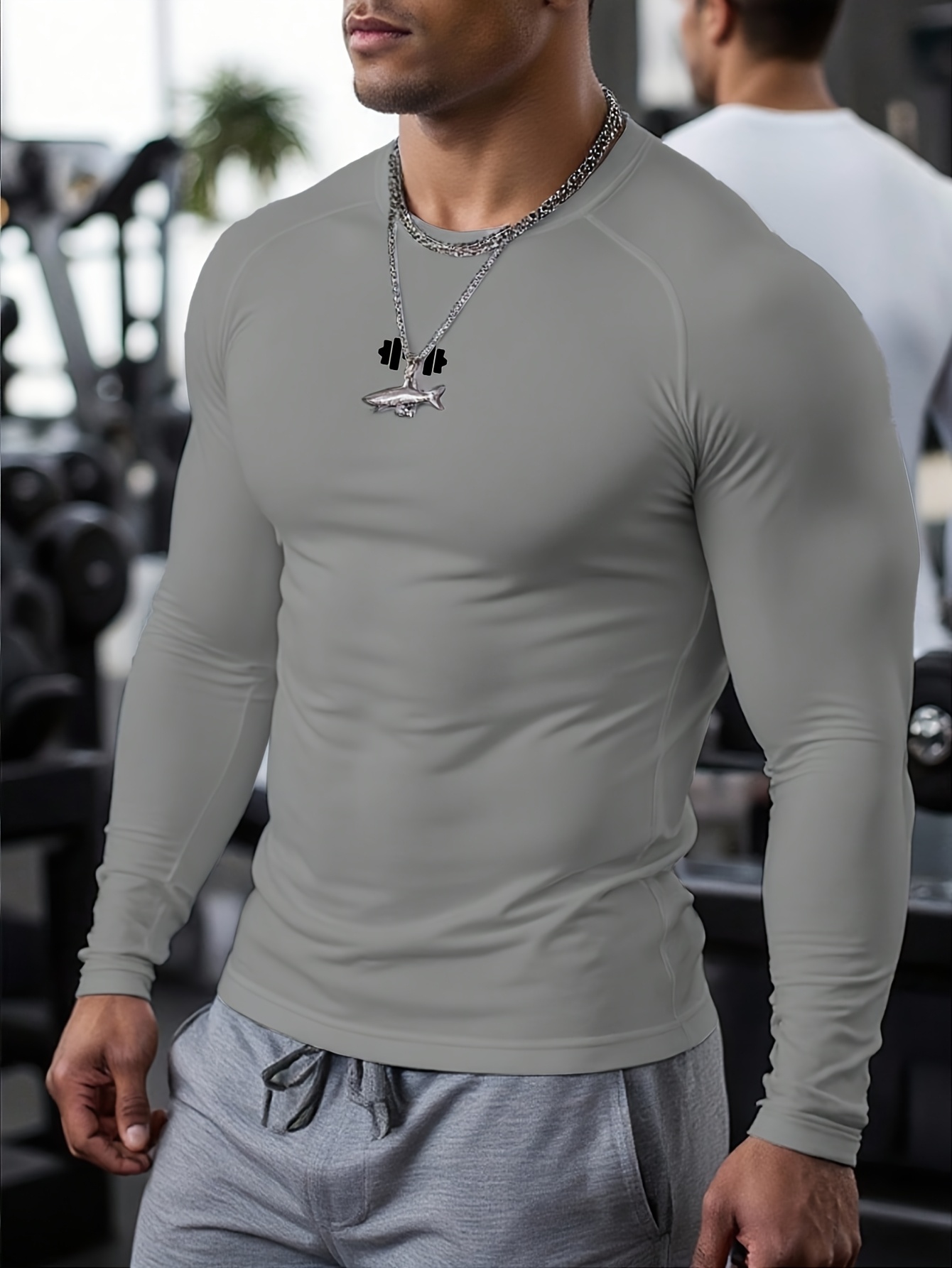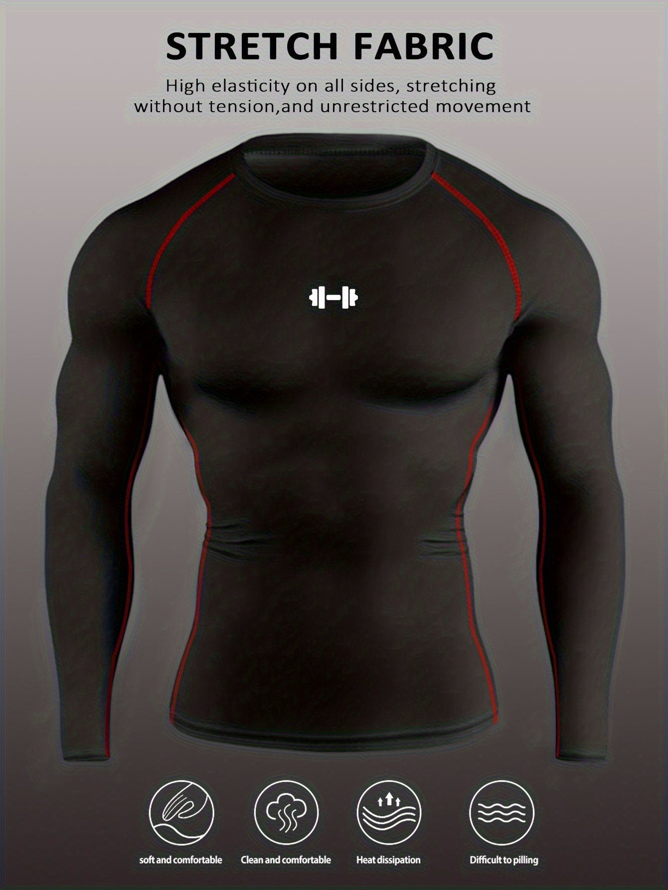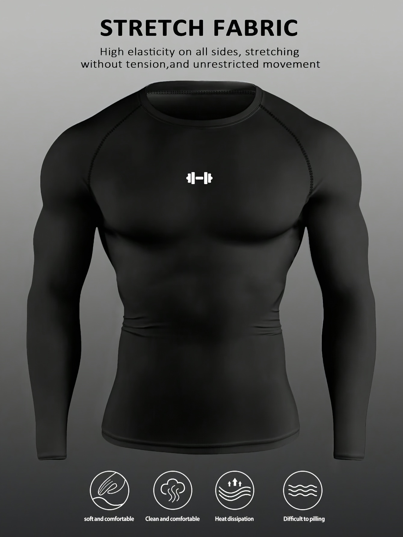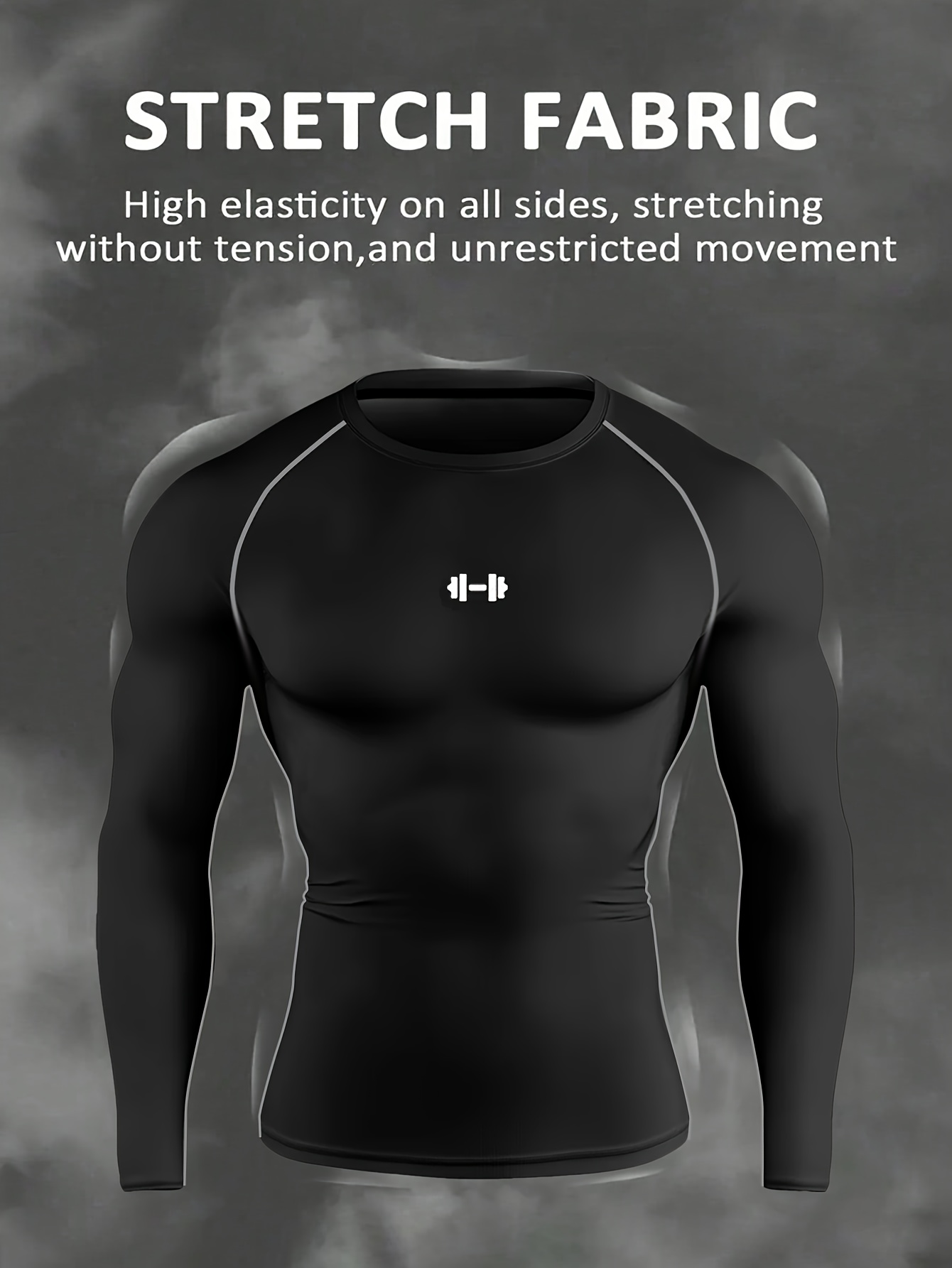 Men's Athletic T-Shirt, Sporty Body-Hugging Fit with High Elasticity, Crew Neck, Long Sleeve, Suitable for Hiking, Jogging, Cycling, and Outdoor Fitness Workouts