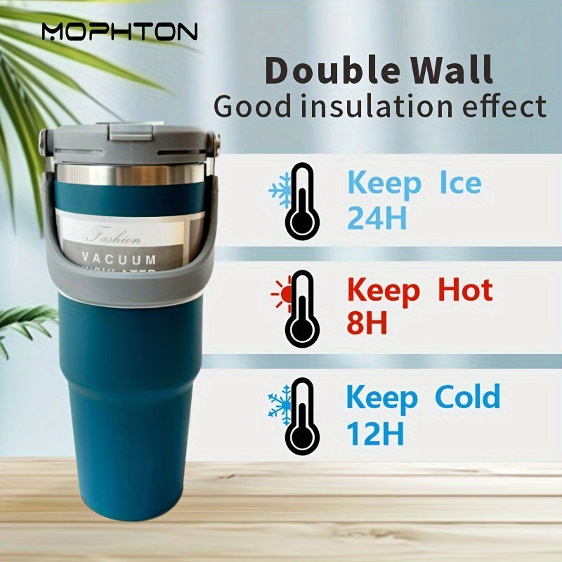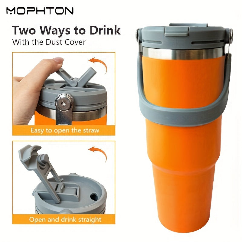 MOPHTON Insulated Stainless Steel Tumbler - Dual Drinking, 24-Hour Cold Retention, Portable for Office, Gym, Yoga & Travel