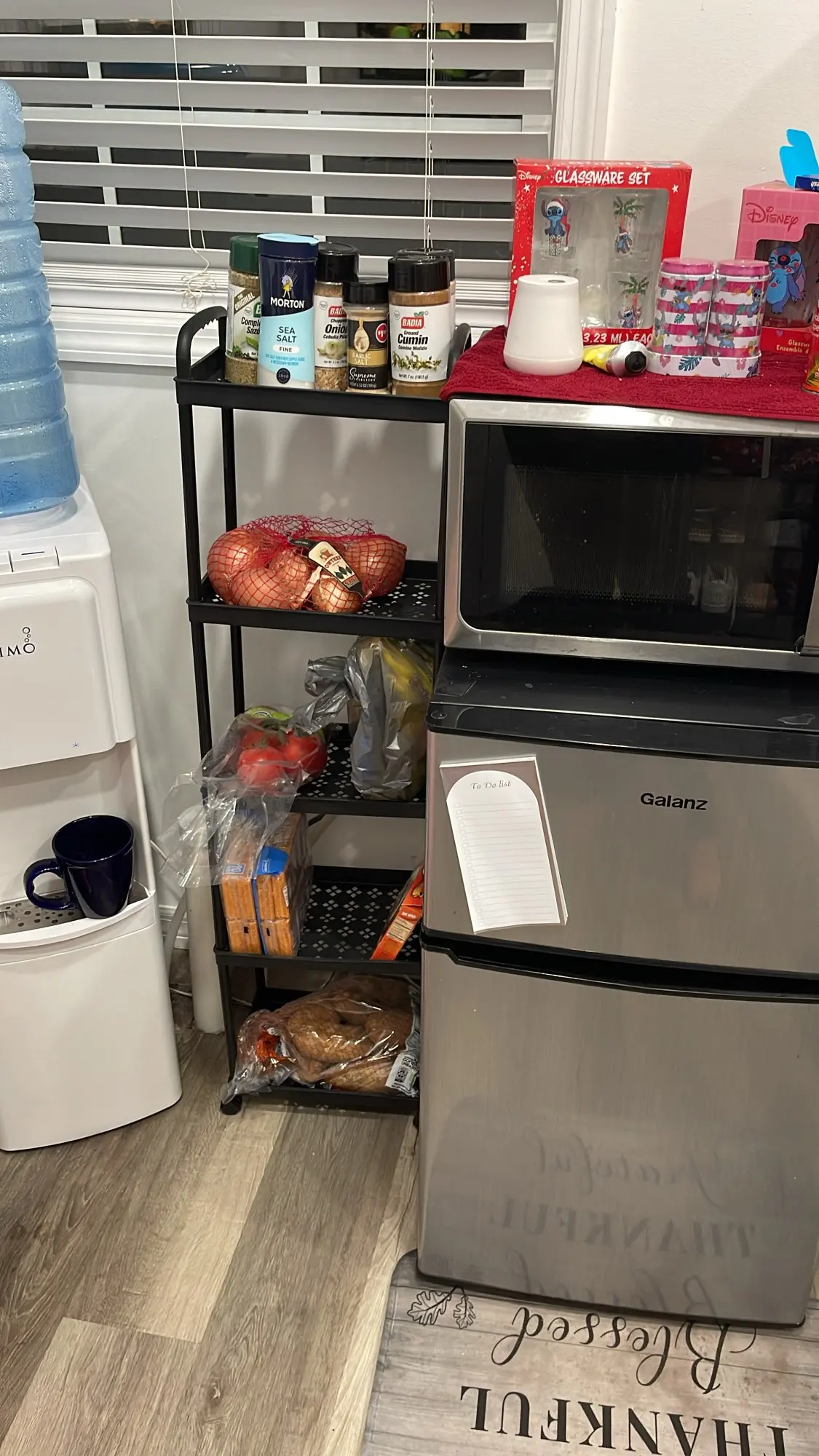 - Multi-layer storage rack provides ample space for organizing food and household items