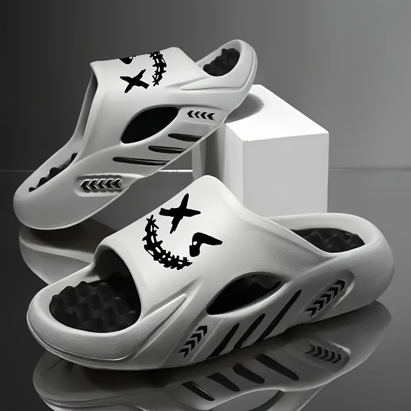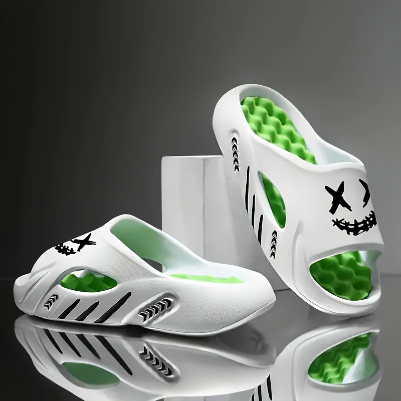 OURANNI Men's Fashion Cartoon Print Lightweight Indoor Shower Slippers, Trendy Unisex for Couples Daily Casual Sports Beach Vacation Wearable in Multiple Scenarios with Durable EVA Structure