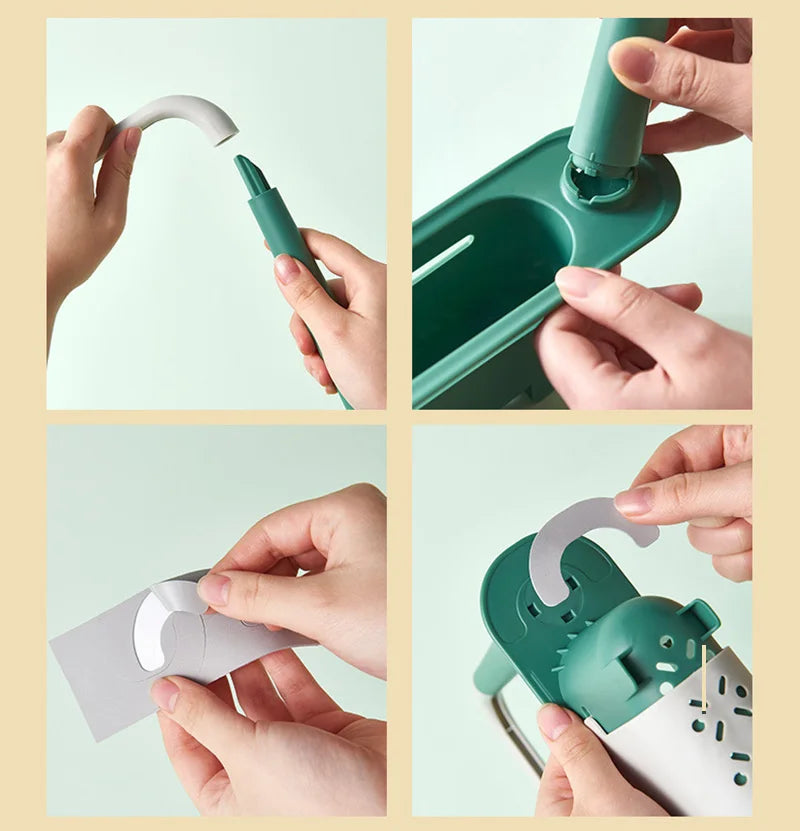 - Multi-Functional Sink Organizer: Includes soap holder, sponge rack, towel hanger, and drainer basket
