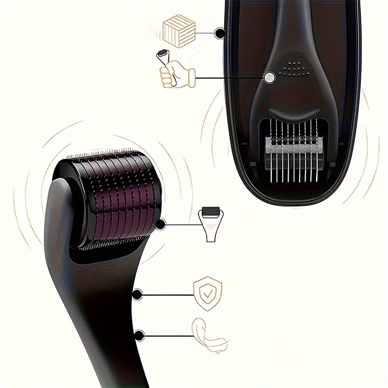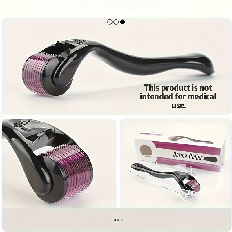 THINTON 0.25mm 540 Titanium Microneedle Roller | Purple Ergonomic Handle, Suitable for Hair and Facial Use, Light Beige, Portable Lightweight Care Tool, Neutral Design Streamlined Grip, Durable Structure, Metal Material