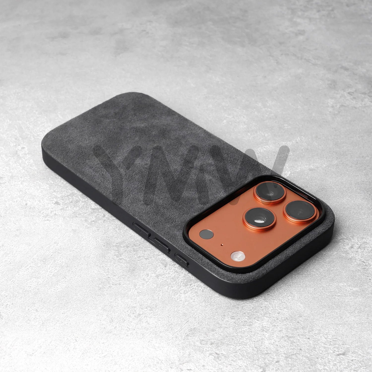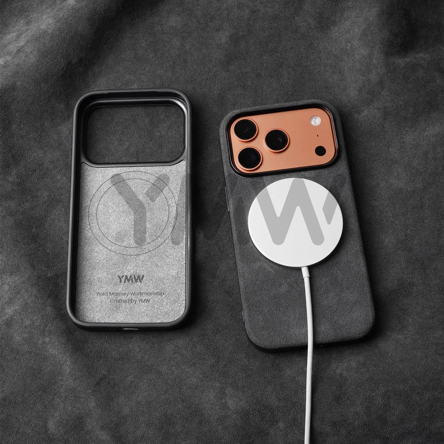 YMW Alcantara Suede Leather Phone Case for iPhone 17/16/15 Series, Luxury Supercar Interior Style Matte Protective Cover with Non-Slip Grip